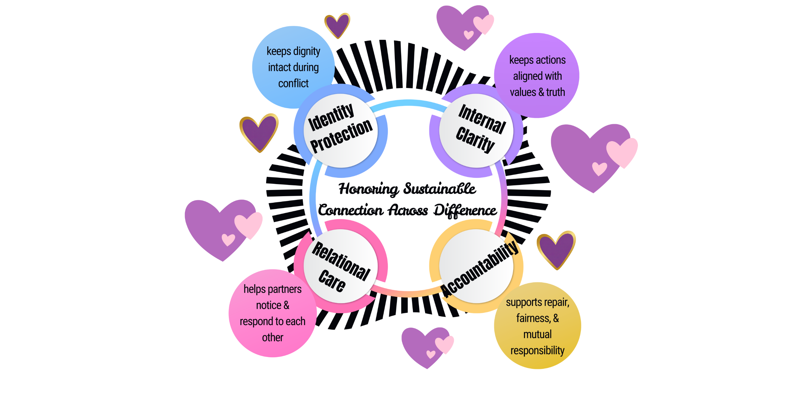 Sustainable connection requires holding all four - internal clarity, relational care, identity protection, and accountability - not perfectly, but in ongoing balance between people.